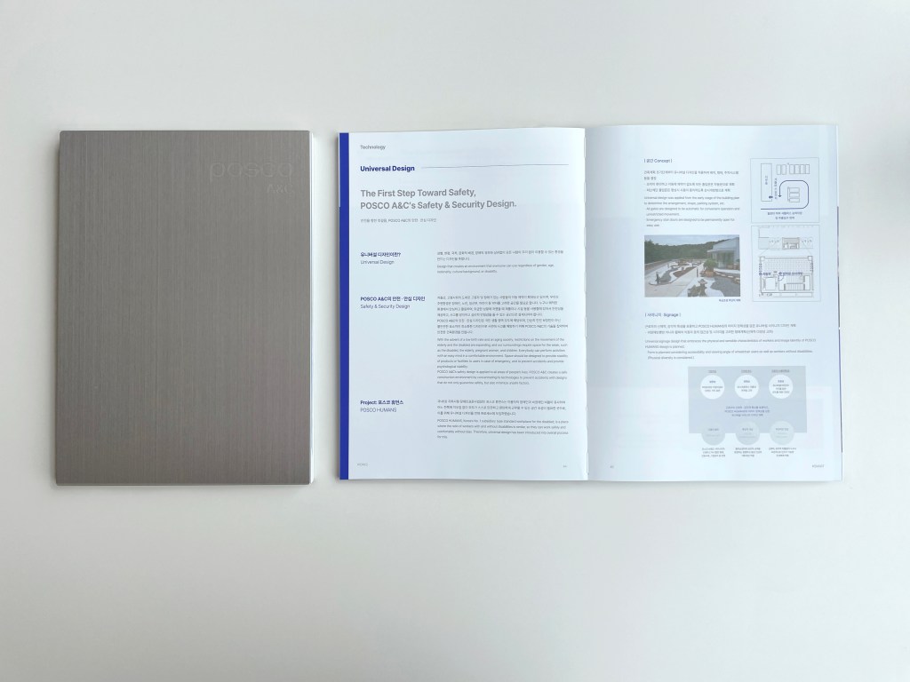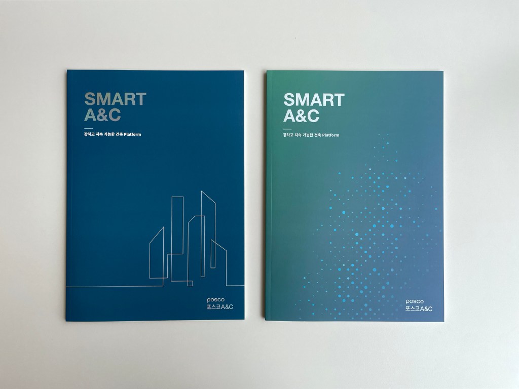 포스코 A&C 설계의 정체성을 FAST, STEEL, SMART, STRONG 키워드 분류하여 작품들을 게재하였고, 팬톤컬러 블루, 실버로 포인트를 주어 포스코 A&C 색깔이 짙게 담은 브로슈어를 지향하였다.