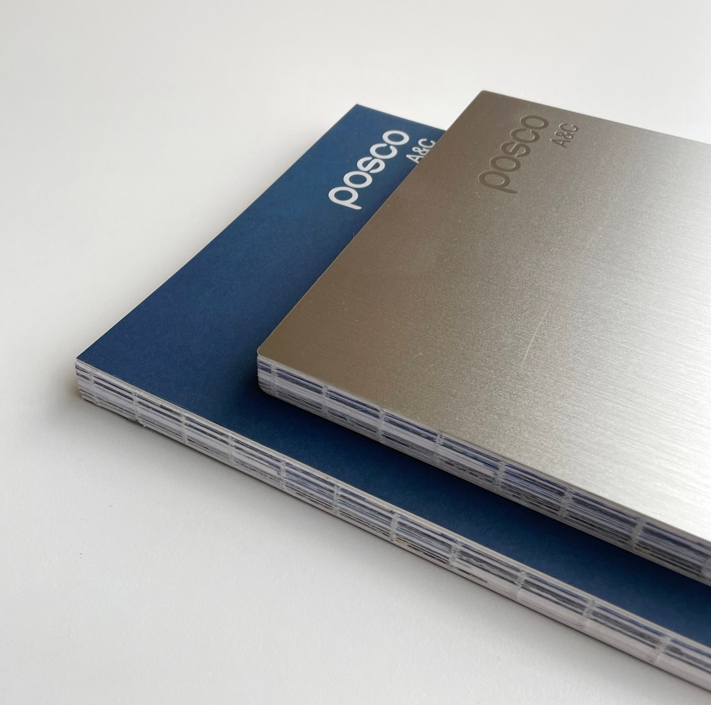 포스코 철강의 이미지와 상징컬러인 블루를 이용한 두 가지 표지 종류의 브로슈어를 제작하였다.